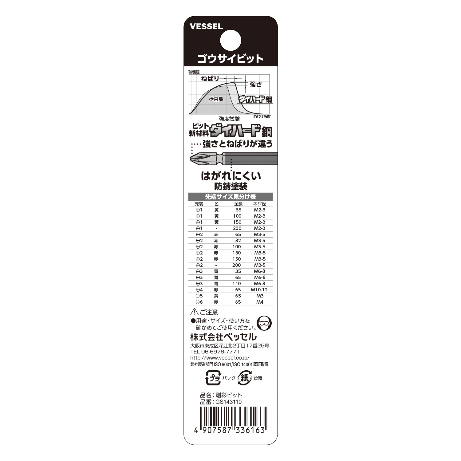| 标示 | 刀尖的分类 | 刀尖尺寸 | 主体总长mm | 主体重量g | 内包装数量 | 外包装数量 | 日本JAN条形码 |