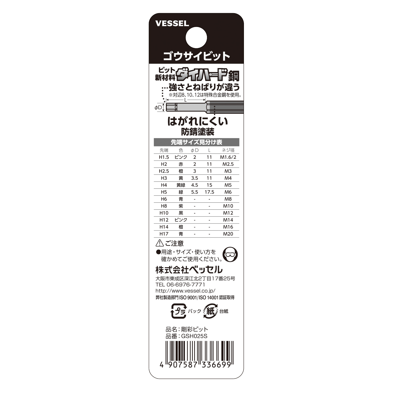 GSH025S(H2.5×65) | 内六角 | H2.5 | 65 | 12.6 | 10 | 200 | 4907587336699 |
