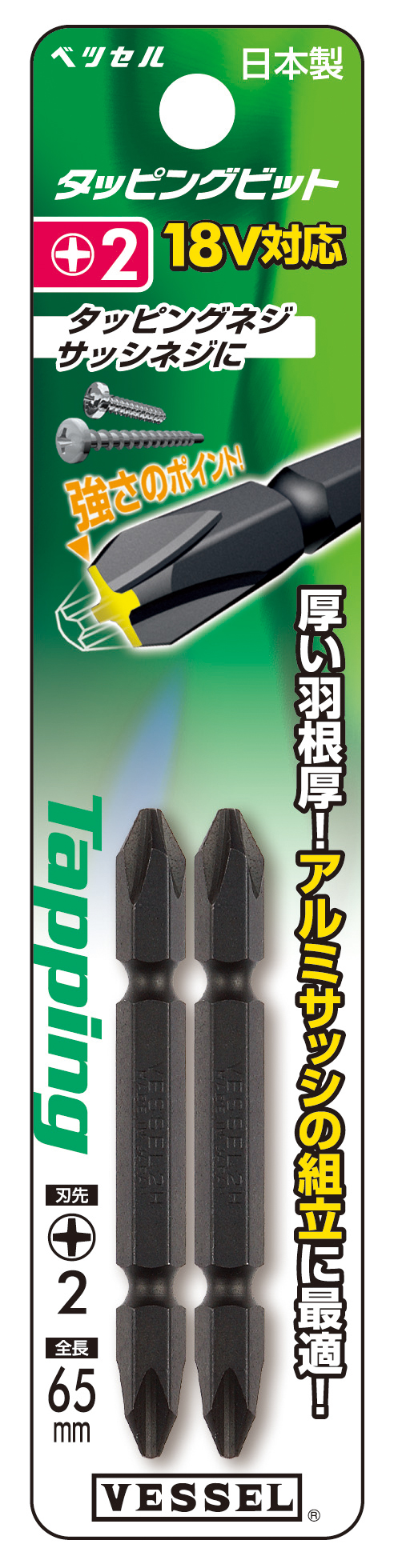 双头四方头批头 2支装 No.A14SQ2065(SQ2×65 2支)