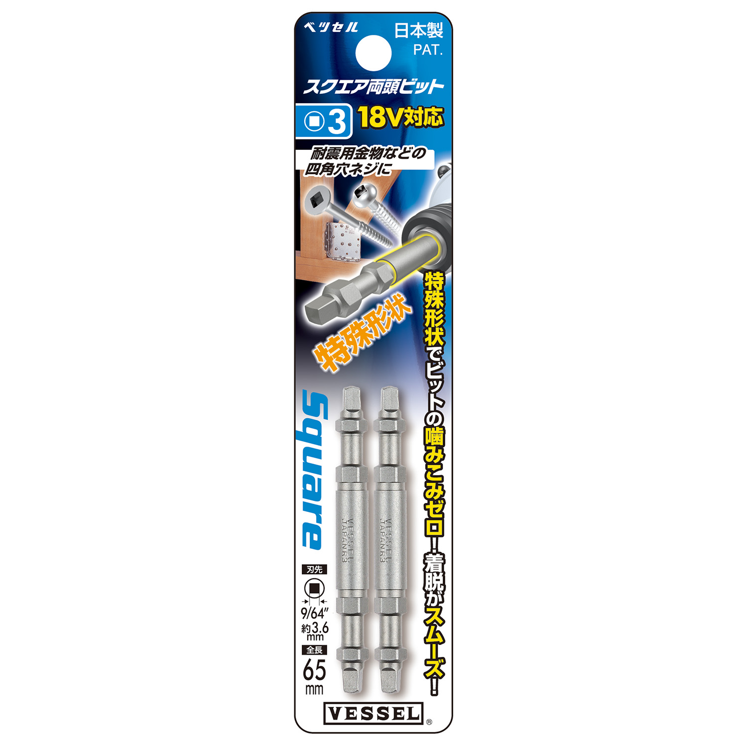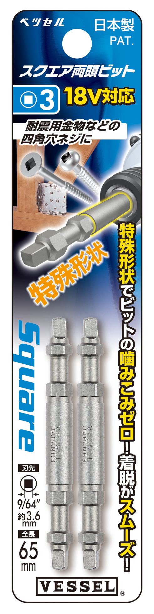 双头四方头批头 2支装 No.A14SQ3065(SQ3×65 2支)