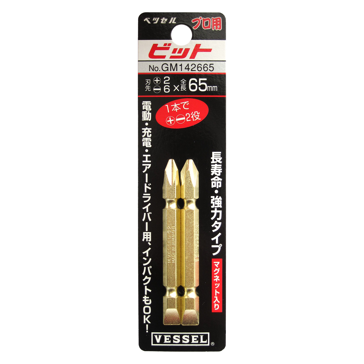 十字,一字双头金色批头 2支装 No.GM142665(+2/-6×65 2支)