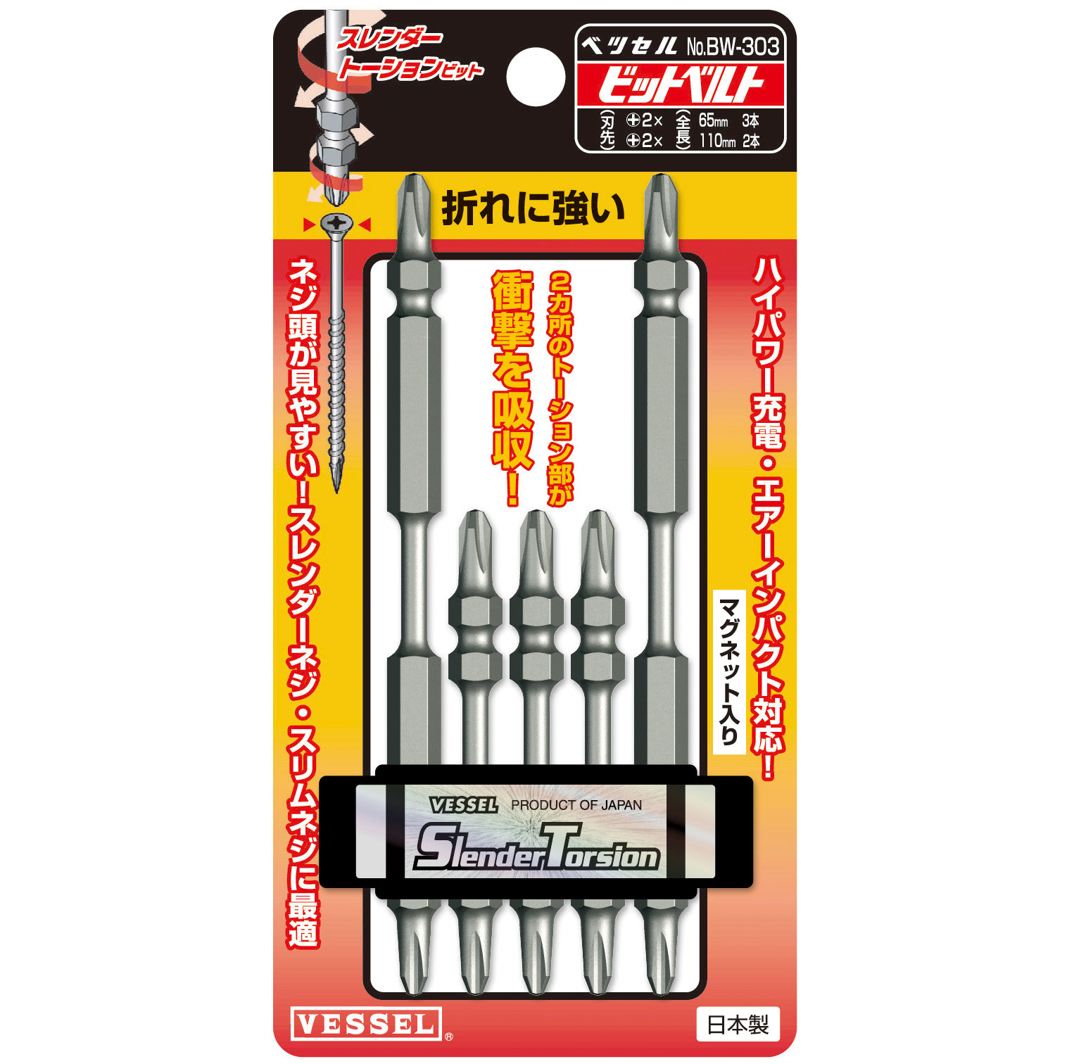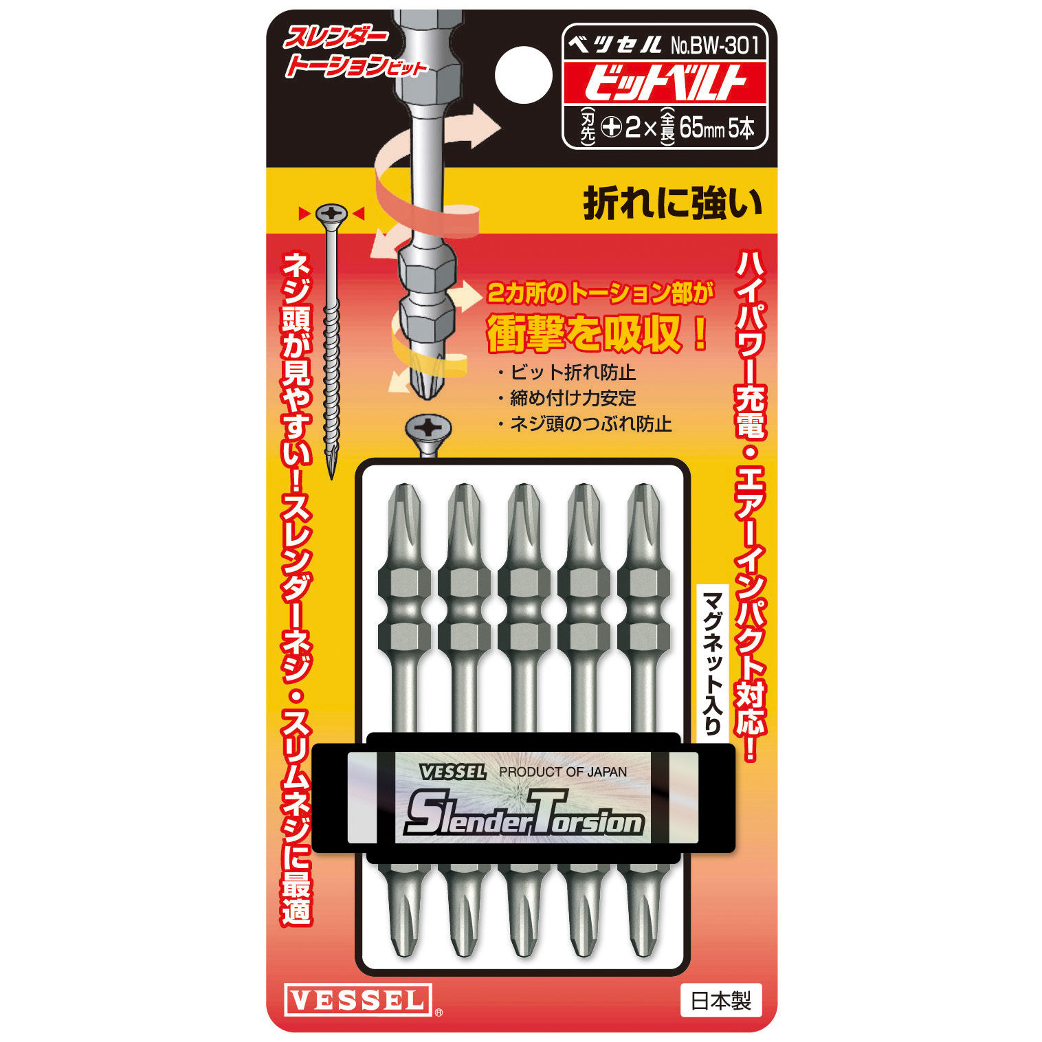 细型扭力批头 5支装 No.BW-301(+2×φ3.5×65 5支)