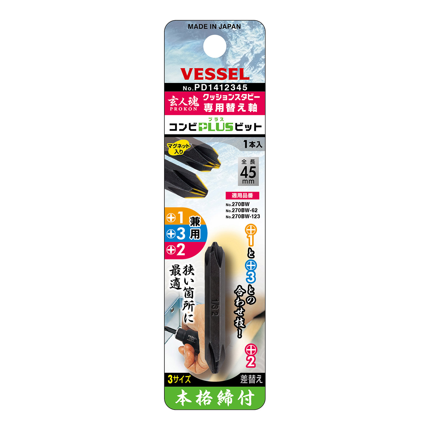专用替换轴 两用十字批头 No.PD1412345(+1,+3/+2×45)