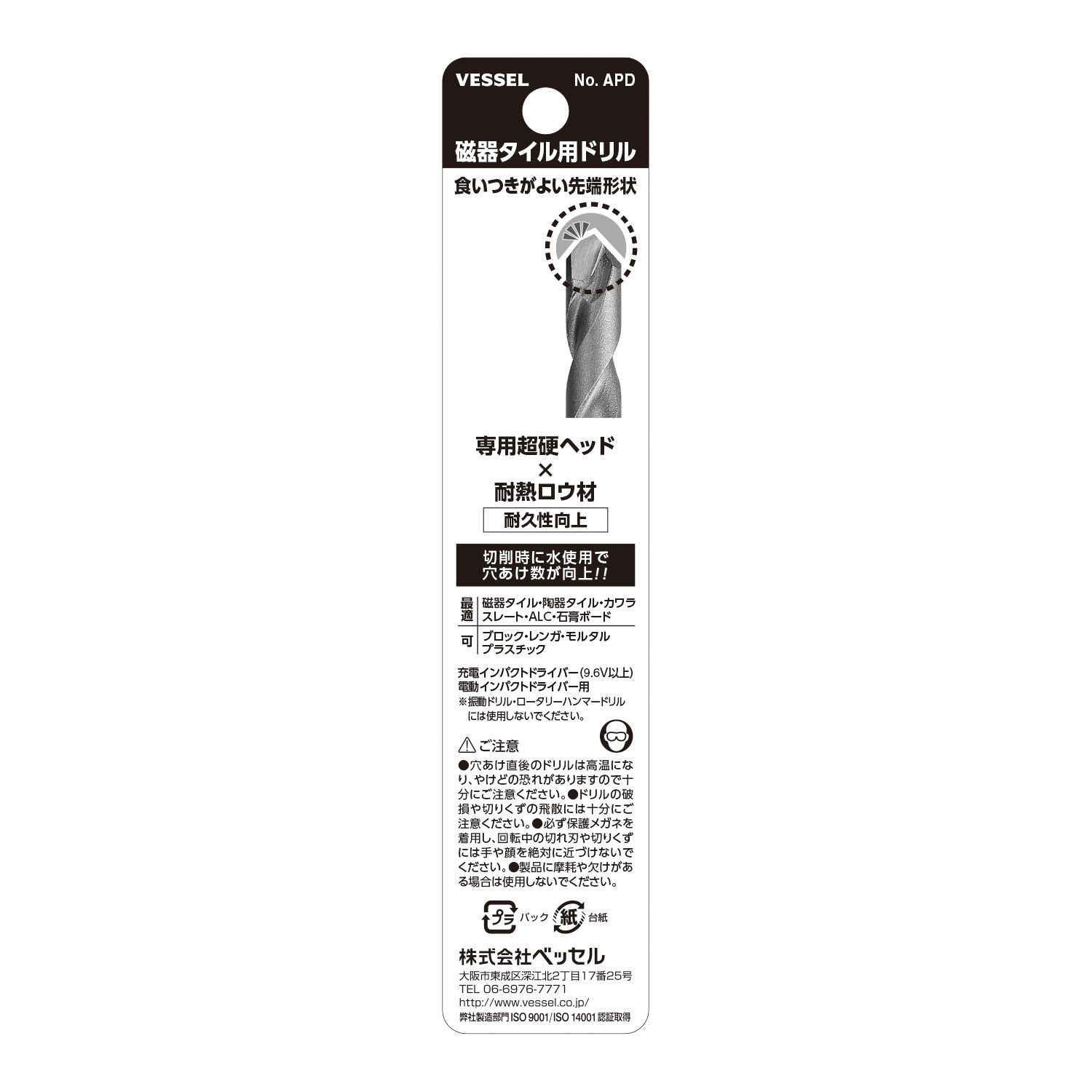 ●利用耐热钎剂接合瓷砖专用超硬钻尖。