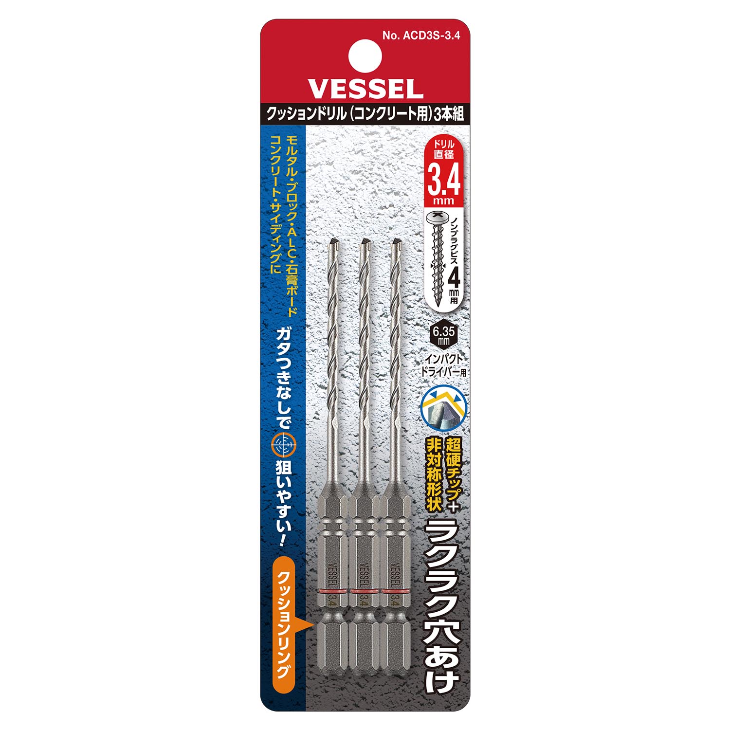 缓冲钻头(混凝土用)3支装 No.ACD3S-3.4(Φ3.4mm 3支)