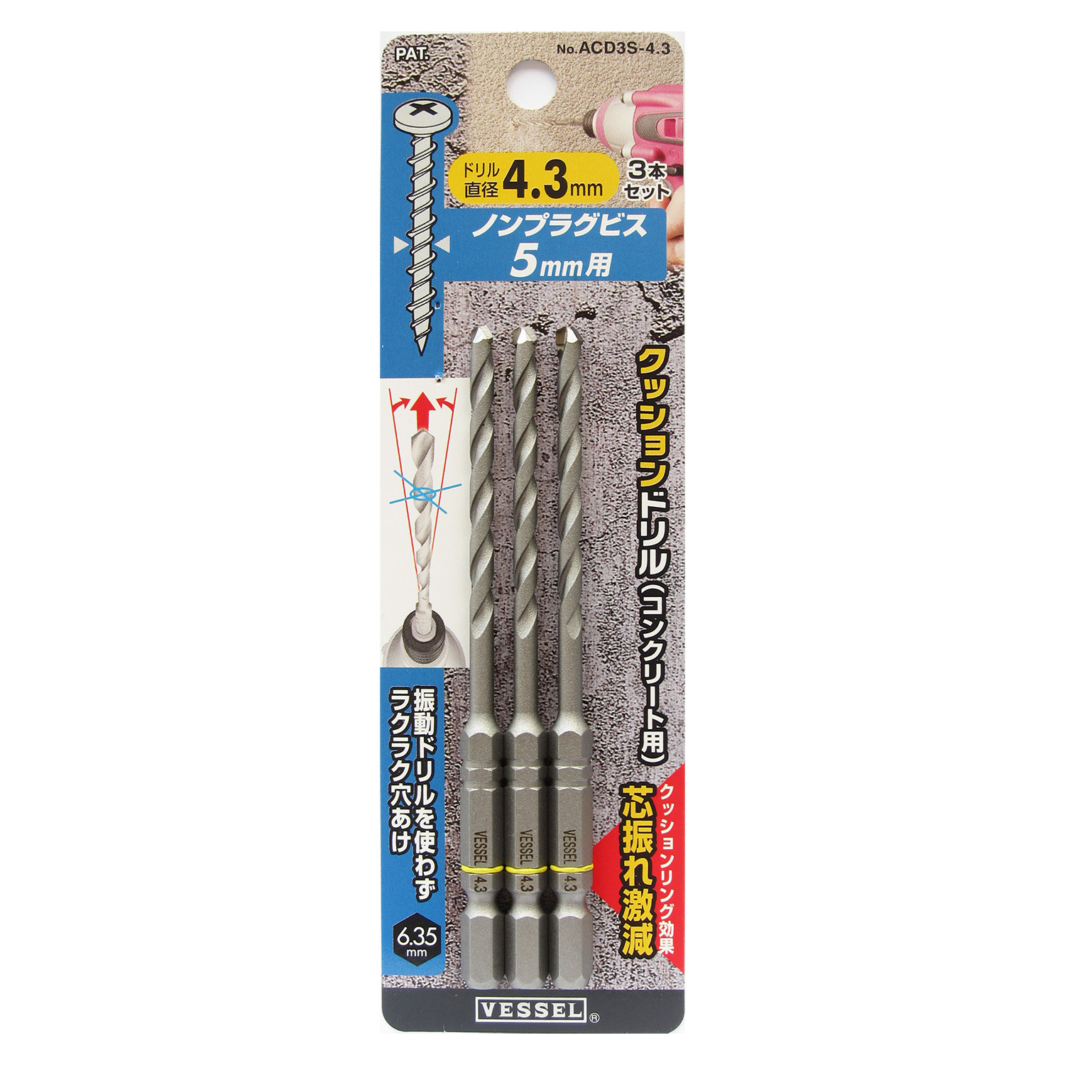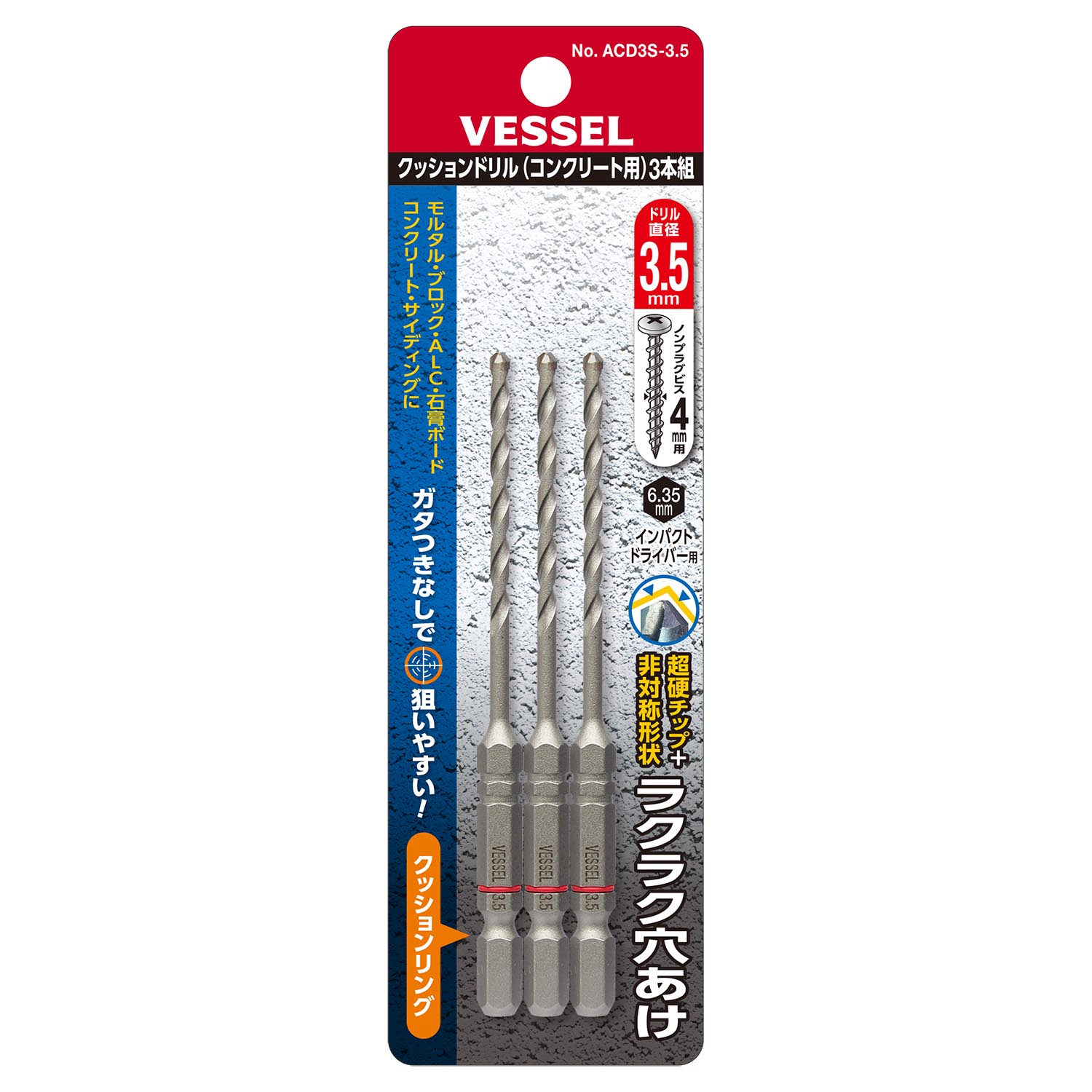 缓冲钻头(混凝土用)3支装 No.ACD3S-3.5(Φ3.5mm 3支)