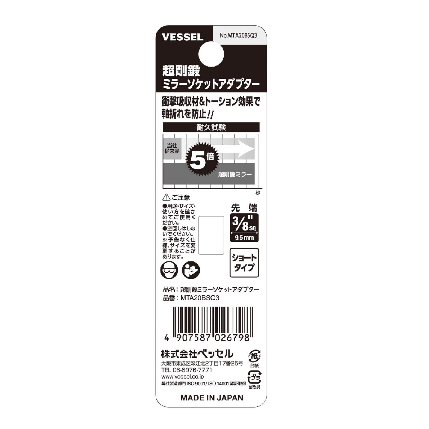 MTA20BSQ3(3/8"SQ 9.5mm 短型) | SQ | 3/8"SQ(9.5mm) | 77 | 54 | 5 | 100 | 4907587026798 |