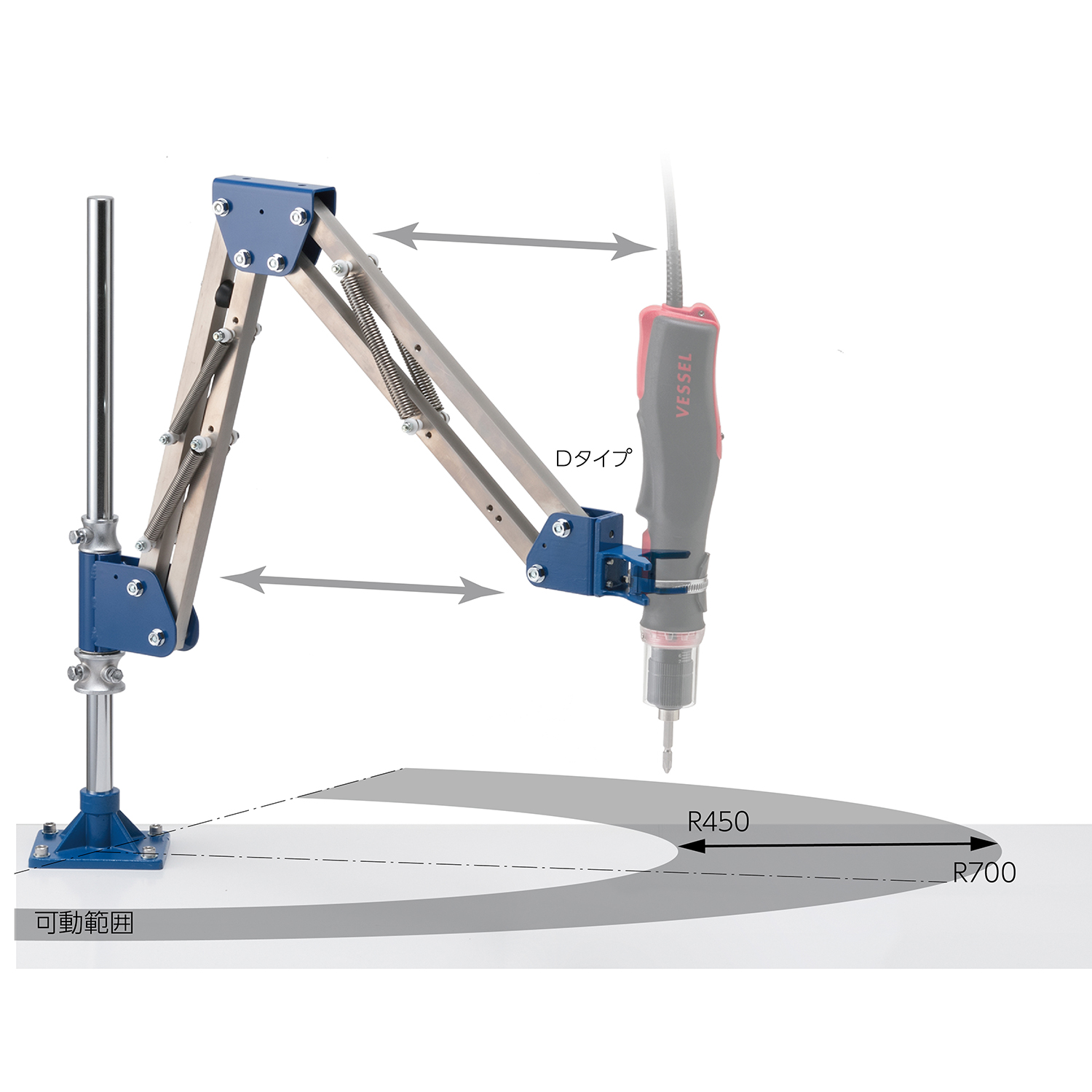 ●可保持垂直或水平移动,提高打螺钉的精度。