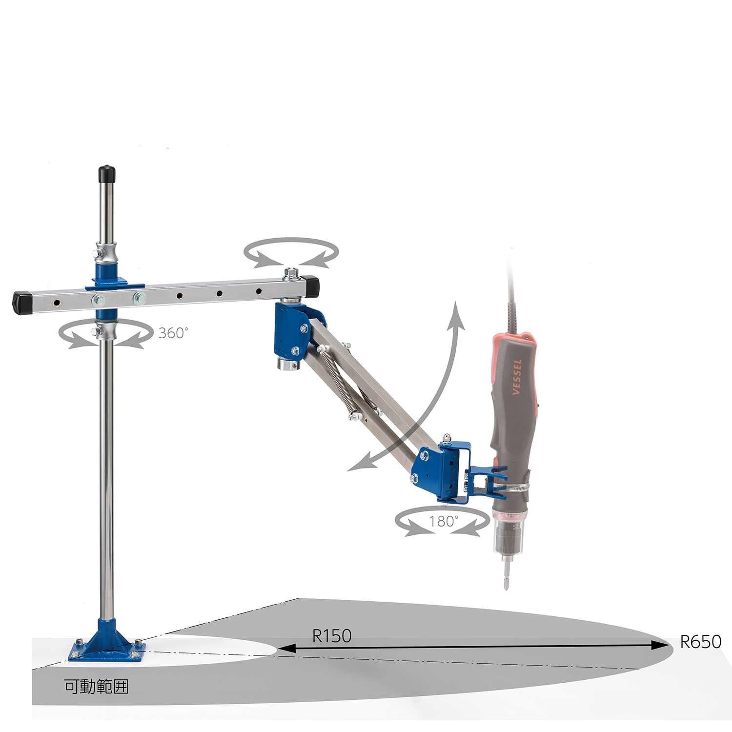 ●工具安装部可旋转,方便在移动较多的作业中操作工具。