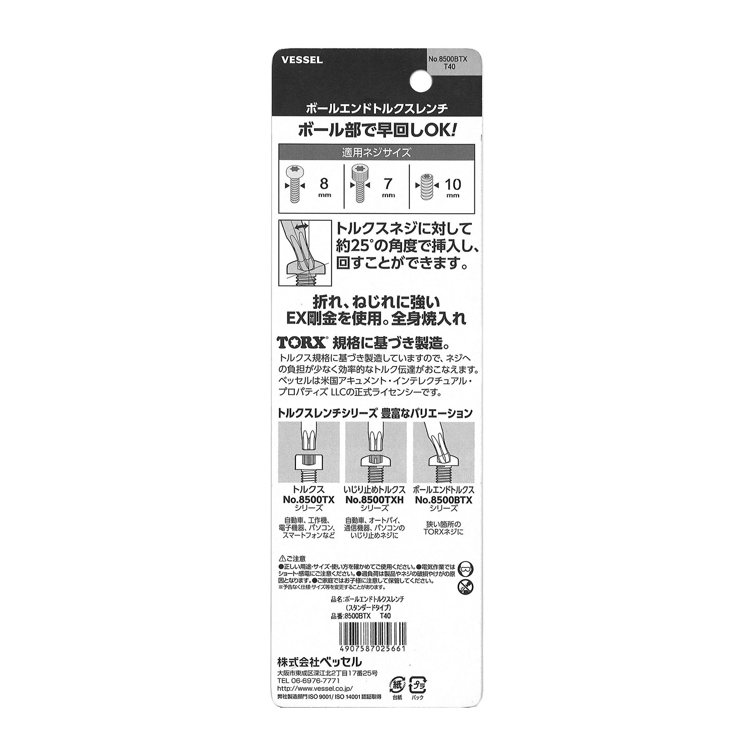标示 主体总长mm L型扳手的短边尺寸mm 主体重量g 内包装数量 外包装数量 日本JAN条形码